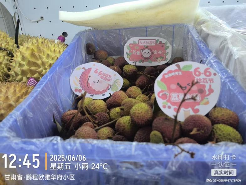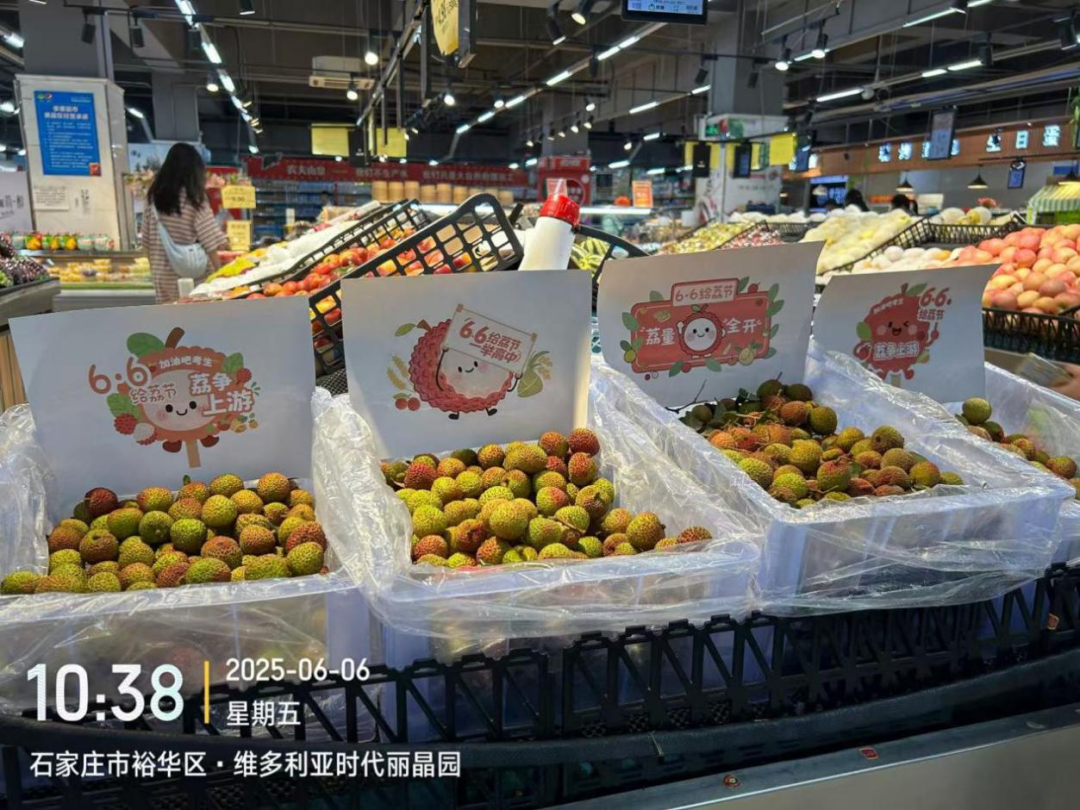 北京市丰台区乐华梅兰水果店内,广东荔枝被摆放在最显眼的位置,吸引着众多顾客驻足选购。甘肃省兰州市安宁区的果果家、宜居园、李鲜生、首杨水果等店铺,也精心布置了“6·6给‘荔’节”的宣传物料,让顾客在品尝荔枝美味的同时,感受到浓厚的节日氛围。河北省石家庄、沧州市、任丘市,河南省郑州市、新乡市,山东省济南市、潍坊市,山西省太原市等地的水果店里,广东荔枝凭借其鲜嫩多汁、清甜可口的品质,赢得了当地消费者的喜爱。